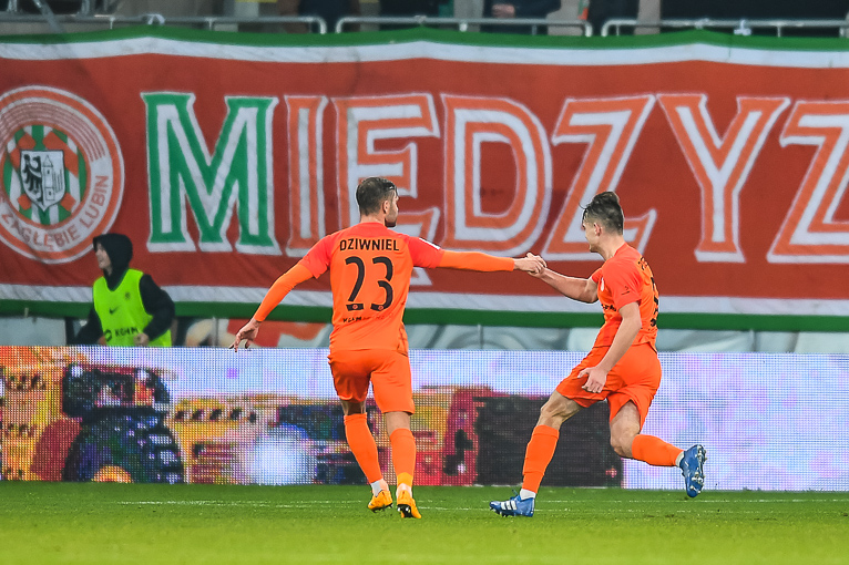 Zagłębie Lubin: Hładun – Dziwniel, Guldan, M. Dąbrowski, Kopacz – Slisz, Matuszczyk, Bohar (90+3. Moneta), Poręba (78. Pakulski) – Pawłowski (83. Mareš), Tuszyński.
