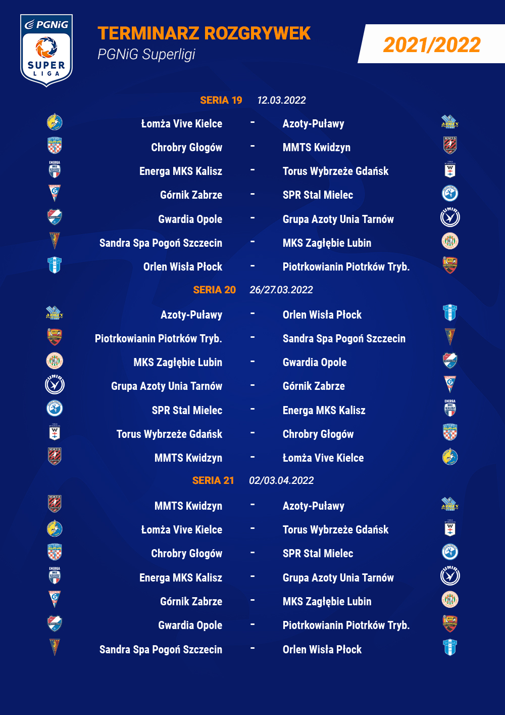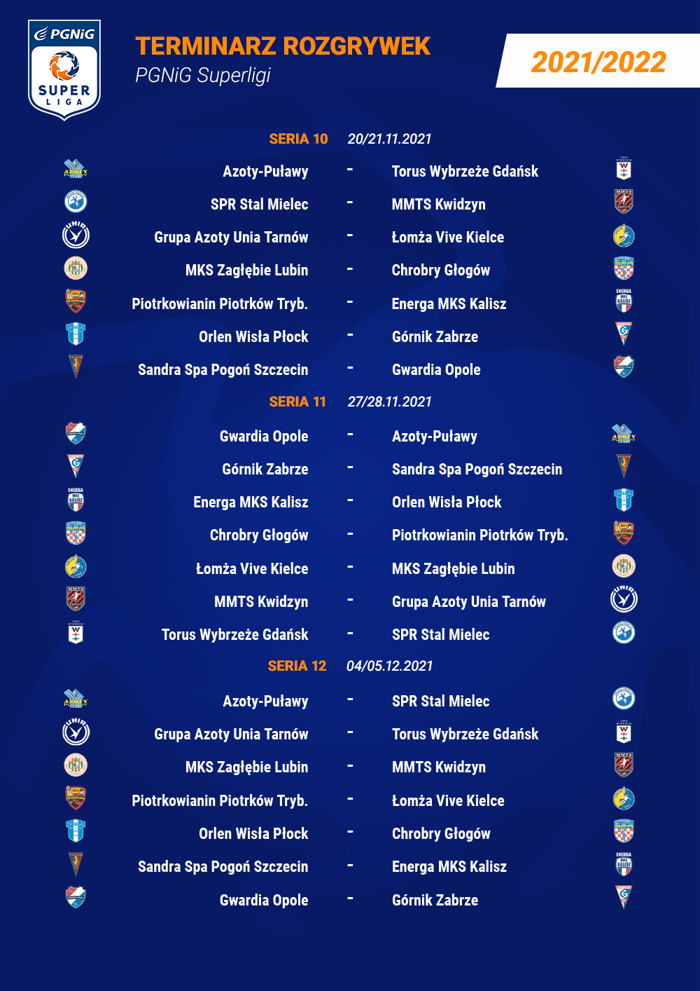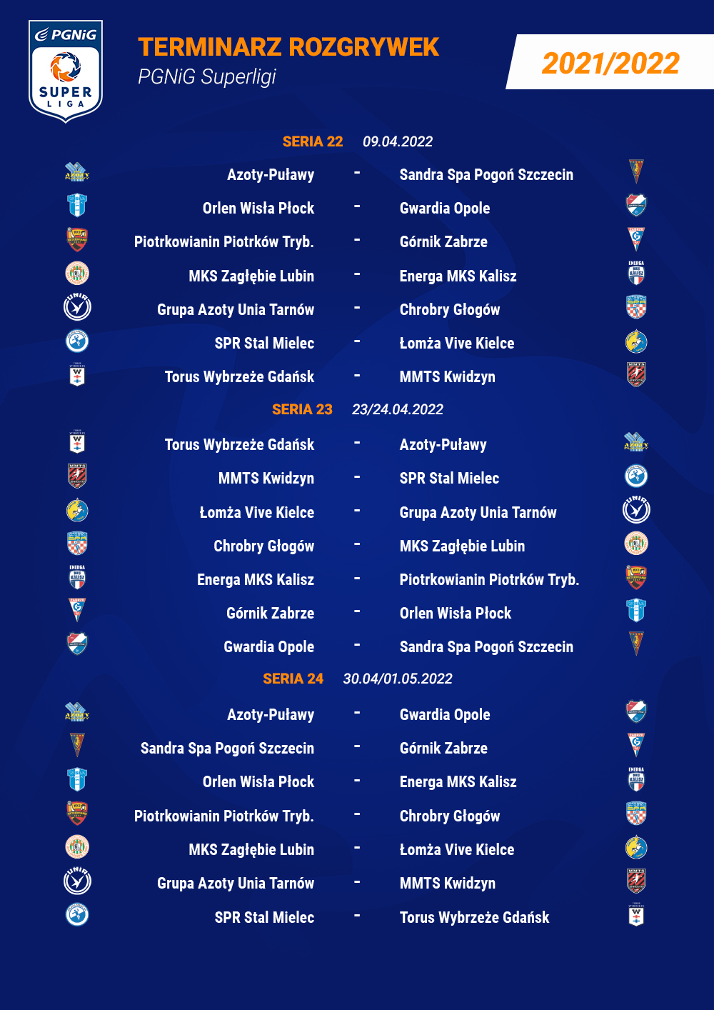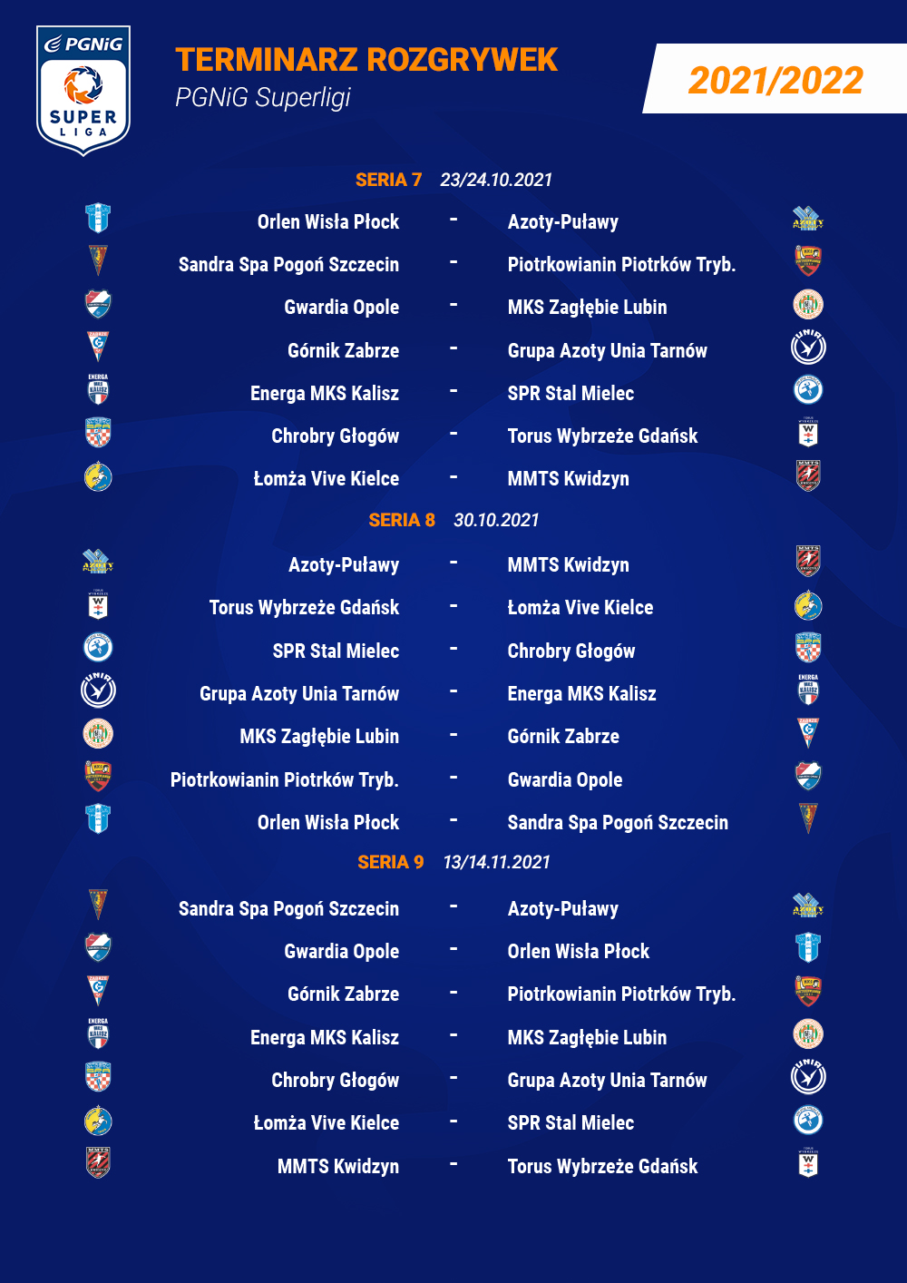 Najważniejsze terminy sezonu 2021/22 PGNiG Superligi: