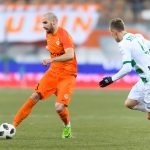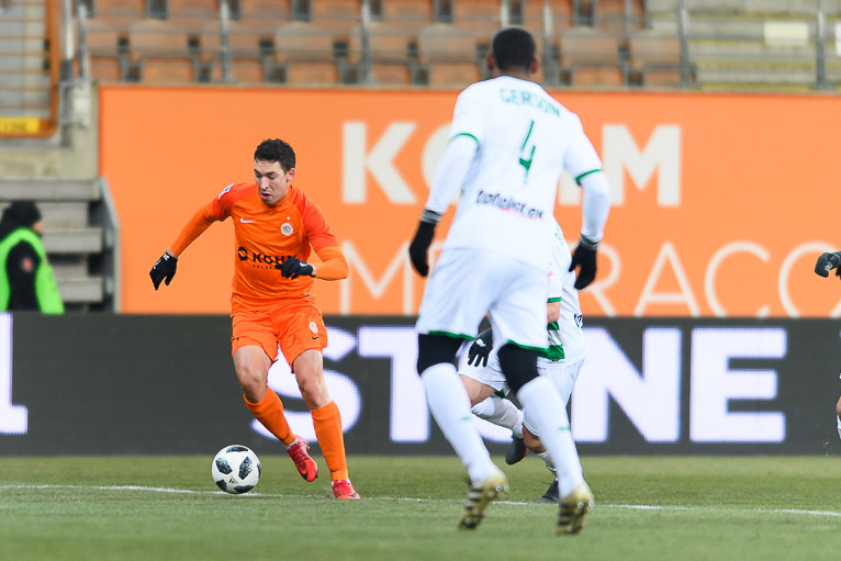 Pierwsza połowa nie przysporzyła nam wielu emocji. Dopiero pod koniec tej części meczu, gospodarze stworzyli kilka ciekawych akcji, po których mogli objąć prowadzenie. W najdogodniejszej znalazł się czeski napastnik Jakub Mares, który najpierw strzelił bramkę z pozycji spalonego, a następnie z małej odległości próbował pokonać Dusana Kuciaka strzałem z głowy. Doświadczony golkiper nie dał się jednak zaskoczyć. Do przerwy 0:0.