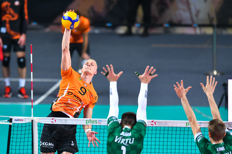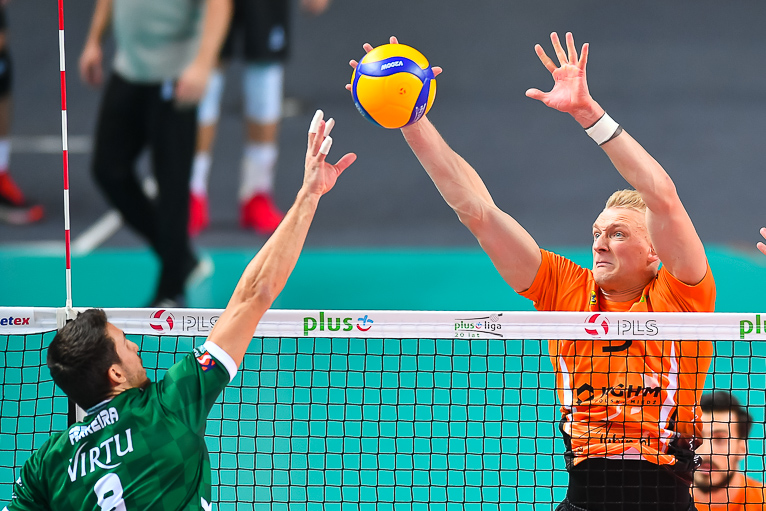 Gospodarze wyszli szóstką: Jędrzej Gruszczyński (Libero), Dvoranen Robinson (przyjmujący), Bartłomiej Lipiński (przyjmujący), Miguel Tavares (rozgrywający), Jakub Ziobrowski (atakujący) i Przemysław Smoliński (środkowy).