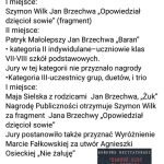 Szymon, uczeń klasy teatralnej, wygrał aż trzy takie przeglądy. Interpretacją wiersza „Opowiedział dzięcioł sowie” przygotowaną pod kierunkiem Krystyny Gorzelnik, oczarował jury konkursu recytatorsko-teatralnego dla klas I-III „Maluchy lubią wiersze”, organizowanego przez Młodzieżowe Centrum Kultury w Legnicy.