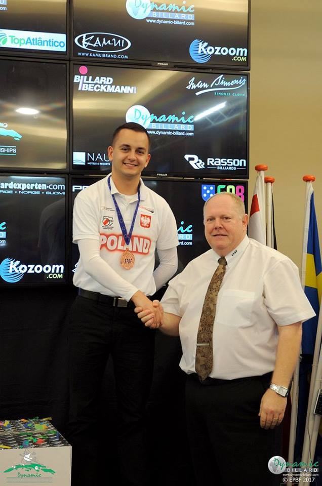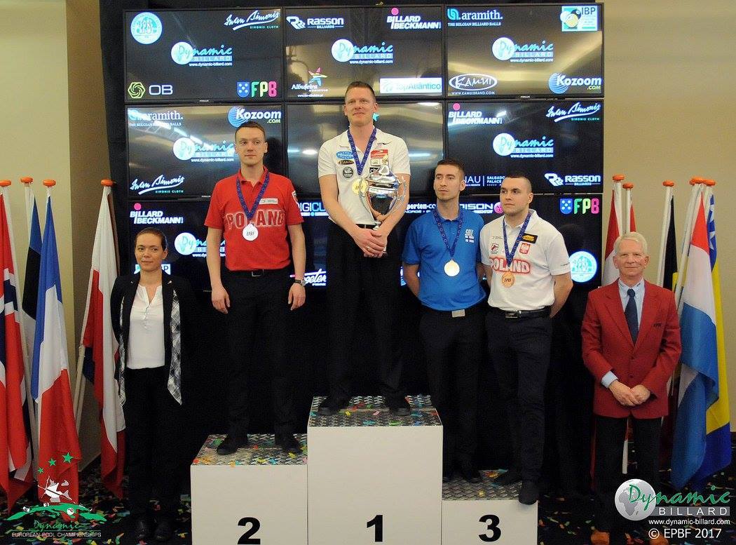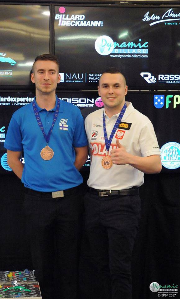 W Portugalii (Salgados Palace Hotel – Albufeira) Mieszko Fortuński wywalczył brązowy medal w 14.1, a Konrad Juszczyszyn w 9 bil. Obaj zawodnicy dołożyli jeszcze brązowe medale w grach drużynowych. Skład zespołu polskiego: Mieszko Fortuński, Konrad Juszczyszyn, Mateusz Śniegocki, Tomasz Kapłan, Mariusz Skoneczny. Świetnie w debiucie zaprezentowała się również nasza zawodniczka Monika Ząbek, która najlepszy wynik osiągnęła w 14,1 – 9 miejsce.