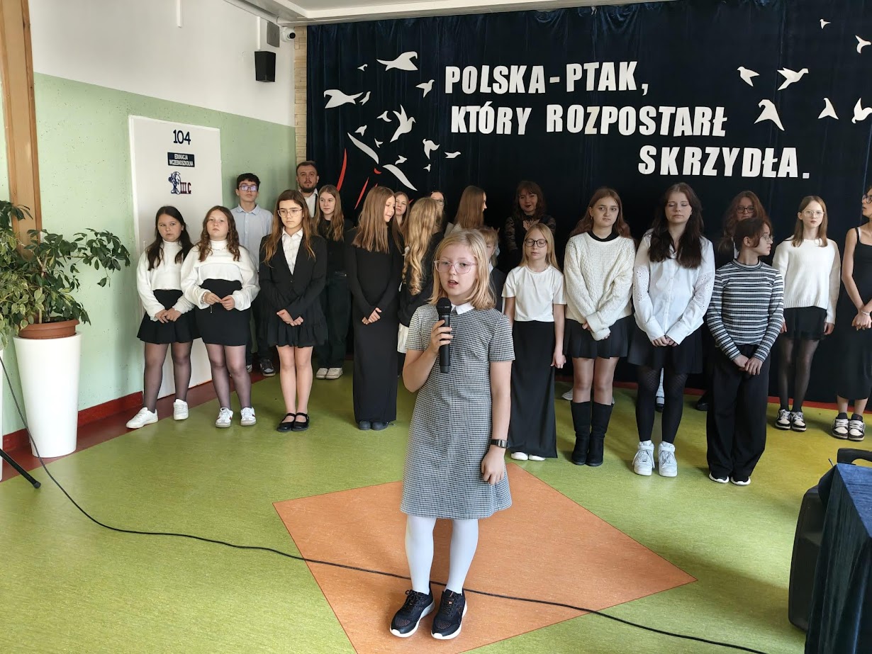 Najpierw była uroczysta akademia, przypominająca o trudnej drodze Polaków do wolności. Po szkolnych korytarzach niosły się „My, Pierwsza Brygada” i „Maszerują strzelcy”.