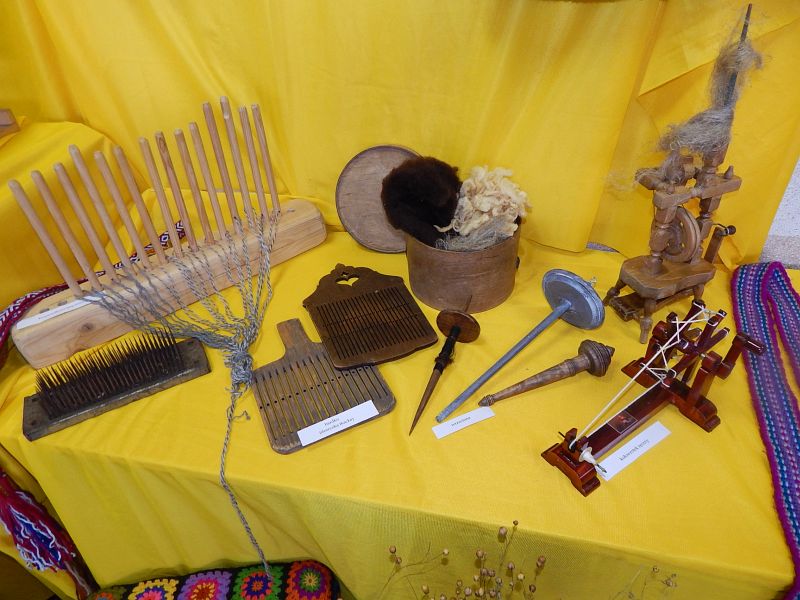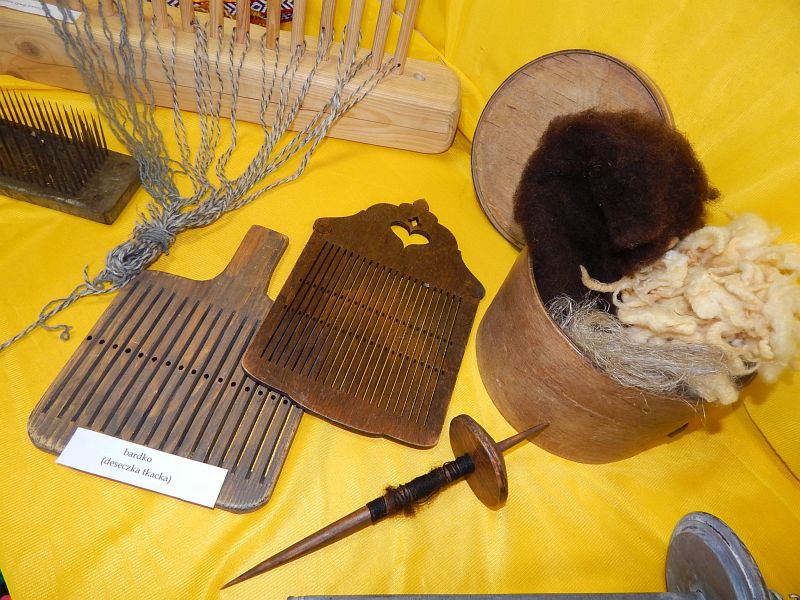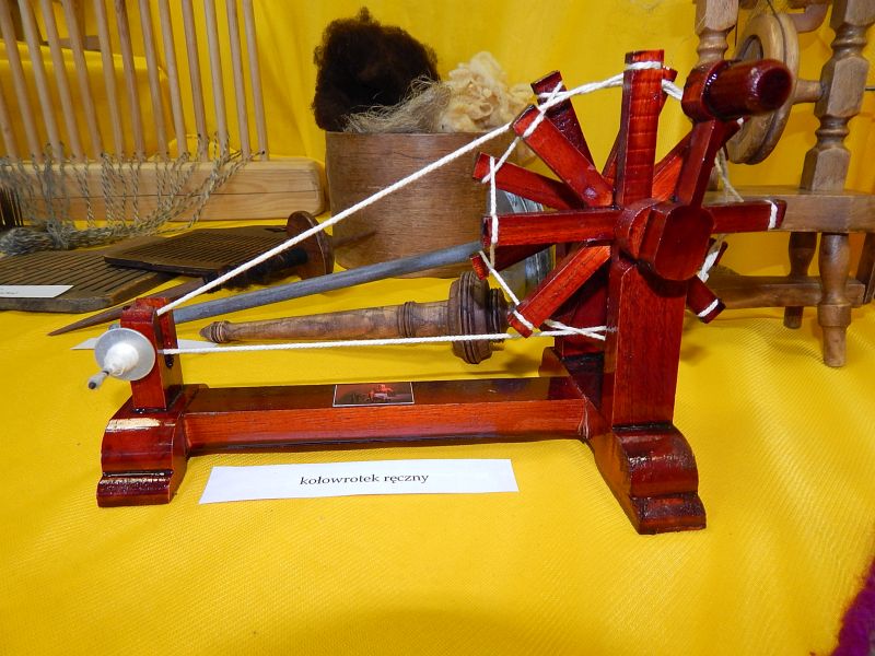 Wystawa wita odwiedzających barwnymi tkaninami, urządzeniami i narzędziami z warsztatu tkackiego: krosnami, bardkami tkackimi, czółenkami, wrzecionami, lucetami, tabliczkami tkackimi oraz kołowrotkami.