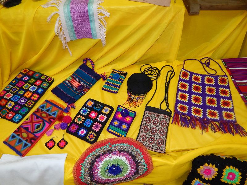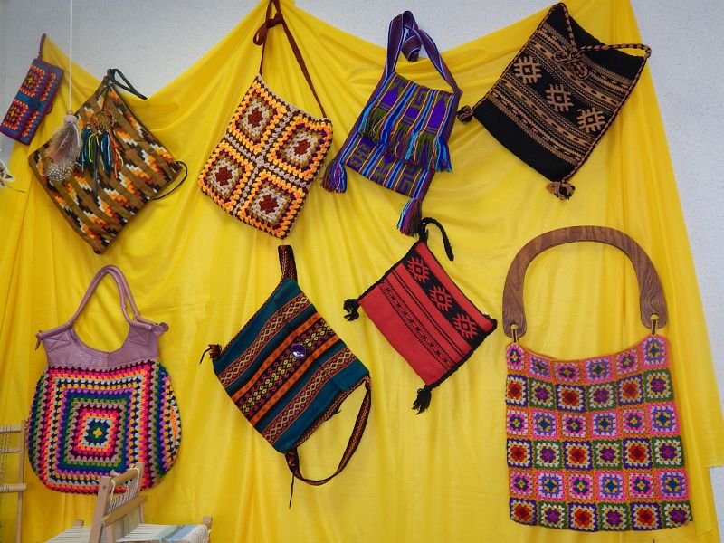 Kolorowe makatki, gobelinki, torebki, a także inne przedmioty użytkowe wykonane przez mieszkankę Koźlic Beatę Stasiak można podziwiać na wystawie w Multimedialnym Centrum Informacji Zespołu Szkół im. Jana Pawła II w Rudnej.