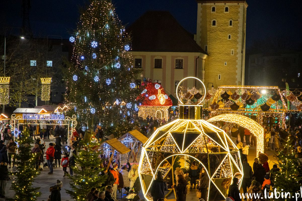 Drugi dzień jarmarku bożonarodzeniowego na lubińskim rynku ponownie przyciągnął tłumy mieszkańców. Od południa aż do późnego wieczora miejsce to tętniło życiem. Między kolorowymi stoiskami unosił się zapach świątecznych potraw, a w tle grała muzyka, tworząc pełen ciepła świąteczny klimat. Najbardziej wyczekiwanym gościem był oczywiście święty Mikołaj, który rozdawał prezenty grzecznym dzieciom.