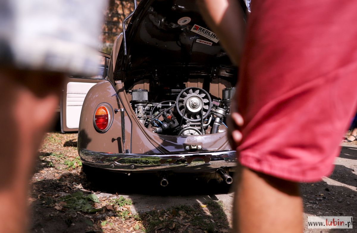 – To jest volkswagen karmann ghia z 1970 roku. Kupiony w totalnej ruinie, pięć lat zajęło przywracanie go do formy. I od piętnastu lat jeździ po naszych, polskich drogach – opowiada Krzysztof Andrzejewski, niegdyś lubinianin, który dziś na zlot przyjechał z ekipą Retro Moto Rawicz. – Znalazłem go już w Polsce, ktoś go sprowadził i nawet zaczął odrestaurowywać, ale zabrakło sił i środków. Przejąłem ten projekt, bo na takie auto polowałem od dawna. Są coraz rzadsze i w tej chwili można je ściągnąć w zasadzie już tylko ze Stanów Zjednoczonych.