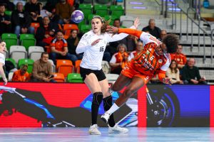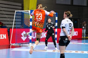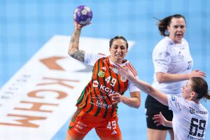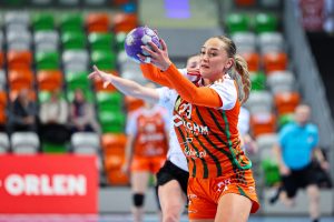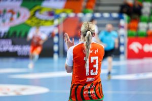 W piątej minucie spotkania KGHM Zagłębie prowadziło już 5:1 i od pierwszych chwil wyraźnie narzuciło rywalkom swój styl gry. Zespół z Lubina kontrolował wydarzenia na parkiecie, a wraz z upływem czasu przewaga „Miedziowych” systematycznie rosła, momentami zbliżając się nawet do granicy dziesięciu bramek. Bardzo dobrze między słupkami spisywała się Barbara Zima, która kilkukrotnie zatrzymywała groźne rzuty przeciwniczek. W ofensywie skutecznością imponowały natomiast Kinga Jakubowska oraz Natalia Janas, które raz po raz znajdowały drogę do bramki rywalek.