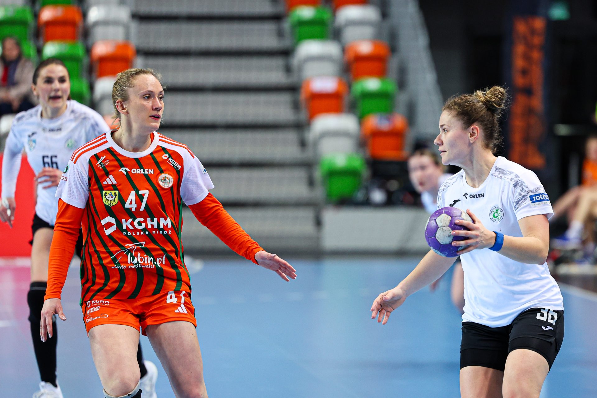 W trzecim meczu rundy mistrzowskiej KGHM Zagłębie pewnie pokonało zespół z Koszalina, kontrolując przebieg spotkania od pierwszych minut. „Miedziowe” zaprezentowały solidną grę zarówno w ataku, jak i w defensywie, dzięki czemu systematycznie budowały swoją przewagę. Lubinianki wykorzystywały błędy rywalek i skutecznie kończyły kolejne akcje, nie pozostawiając wątpliwości, która drużyna tego dnia była lepsza. Dzięki konsekwentnej i zdyscyplinowanej grze KGHM Zagłębie sięgnęło po zasłużone zwycięstwo, dopisując kolejne cenne punkty w rundzie mistrzowskiej.