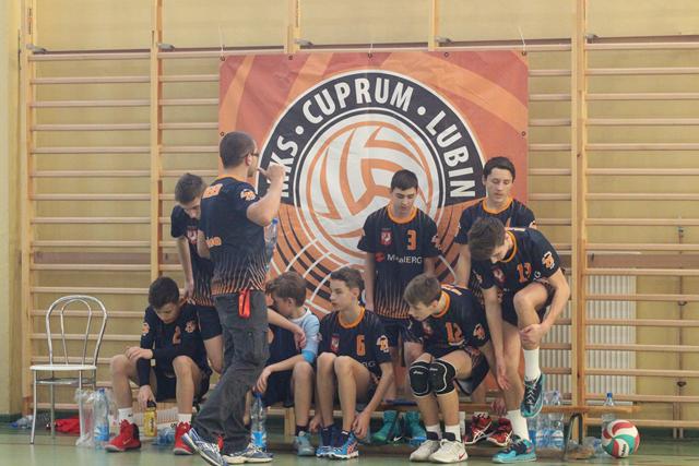 Lubinianie zainaugurowali turniej we własnej sali z ekipą z Wałbrzycha. Podopieczni Dariusza Ratajczaka w pierwszym secie napsuli Cuprum nieco nerwów. Chłodne głowy i ostra gra przy siatce dała gospodarzom rezultat 25:20. W drugim secie poszło już nieco lżej. Skuteczna zagrywka i dobry podwójny blok miejscowych dał im rezultat 25:19 i zwycięstwo 2:0.