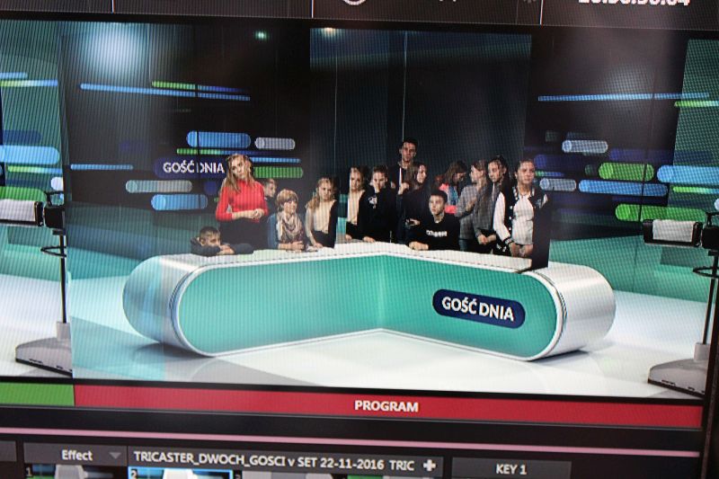 Młodzież mogła zobaczyć, jak wygląda praca w telewizji przy użyciu tzw. wirtualnego studia. Jednak nie tylko patrzyli, ale także sami trochę „popracowali”. Nagrali bowiem program „Gość Dnia” – byli jednocześnie prowadzącymi i gośćmi.