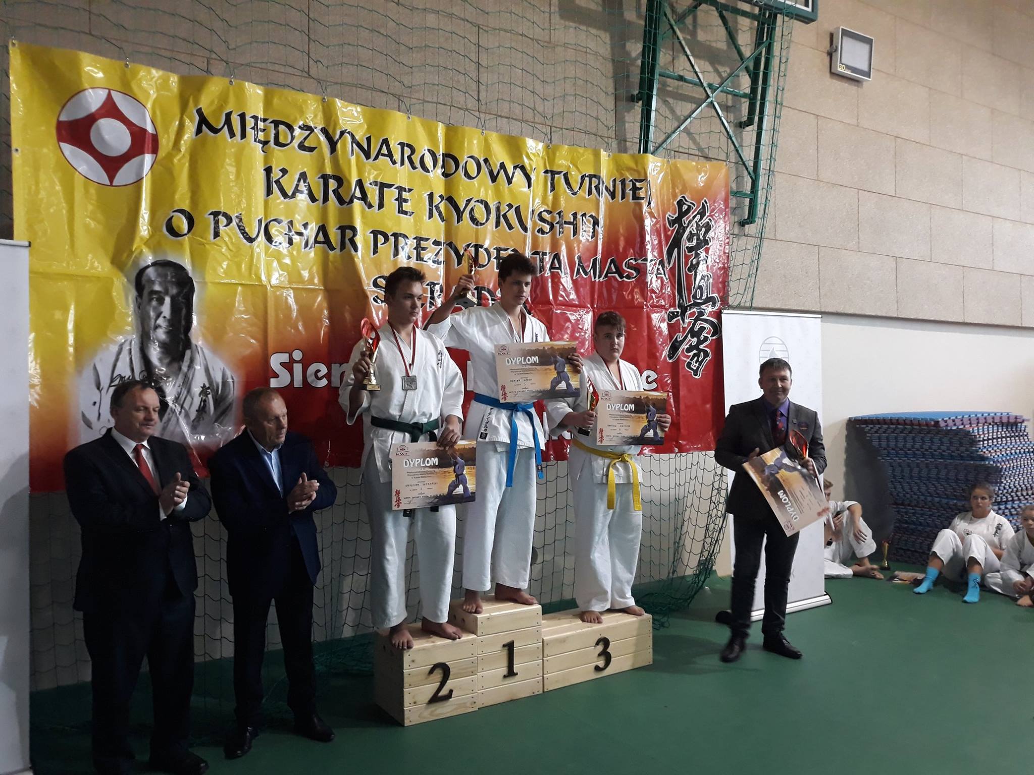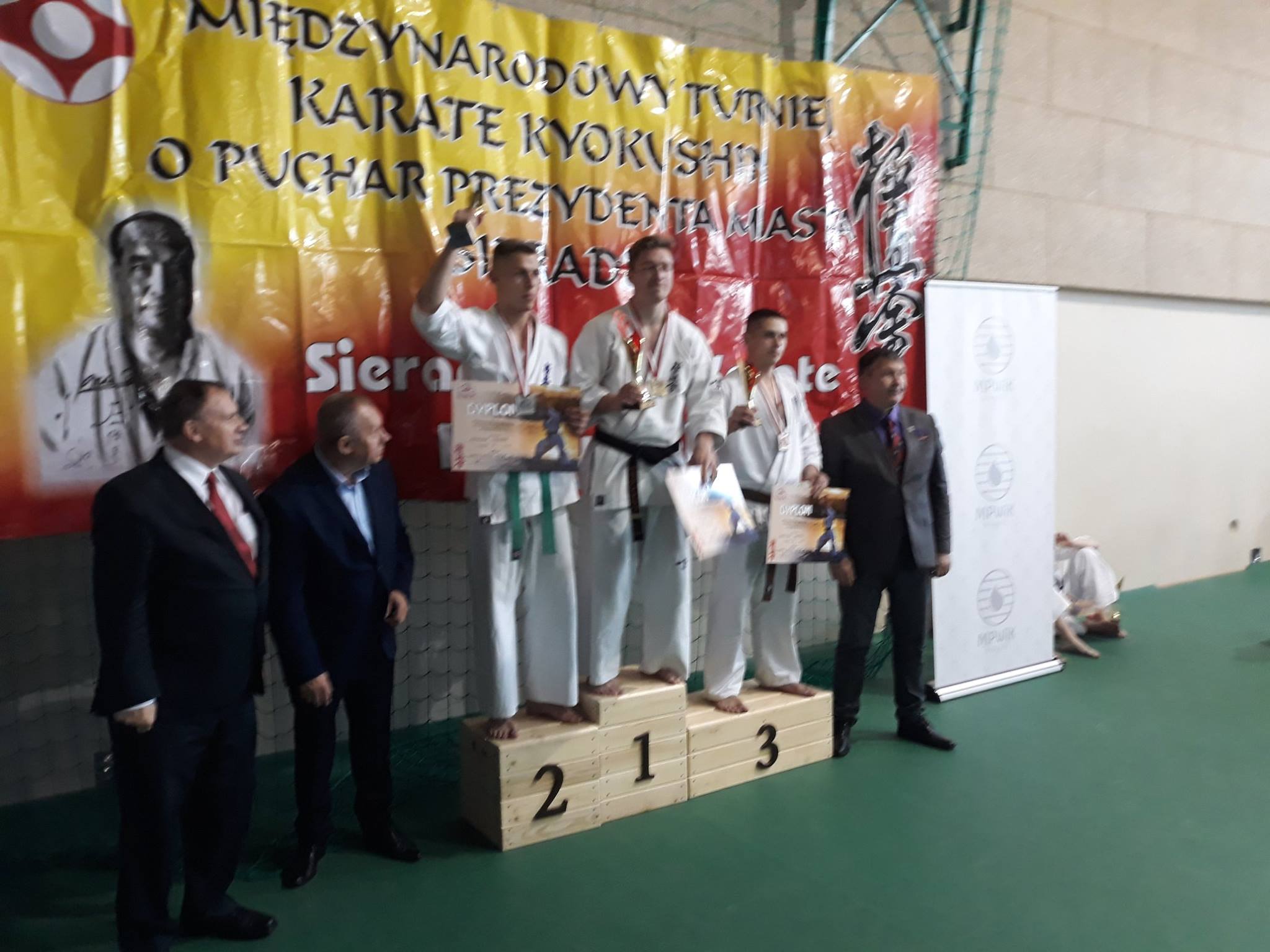 Konrad Dołhun po pięknych walkach zdobył pierwsze miejsce w kategorii kumite i kata juniorów. Dominik Sikora zdobył drugie miejsce w kumite senior -80 kg. W drodze do finału wygrał przez ippon z zawodnikiem z Częstochowy. W walce finałowej uległ bardziej doświadczonemu zawodnikowi z Czech. Bartosz Wątroba junior +75 kg uplasował się na trzecim miejscu w kumite, a Norbert Kurzawski wywalczył trzecie miejsce w kata młodzików. Bardzo udany start zanotowała także Paulina Dołhun, któa była trzecia w kata młodziczek.