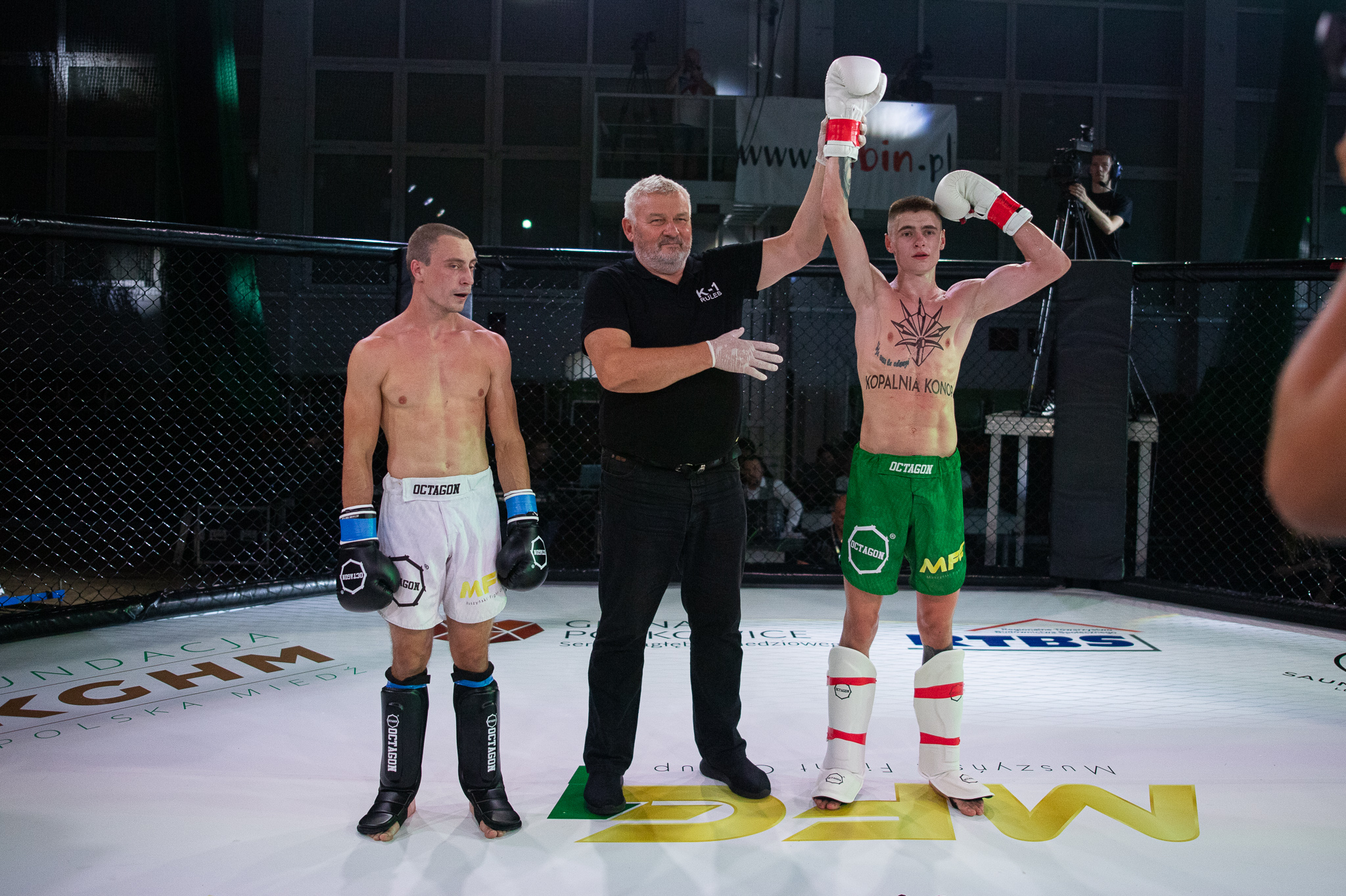 68 kg: Kacper Muszyński pok. Grzegorz Rogalski przez KO, runda 1 (Łokieć), MMA