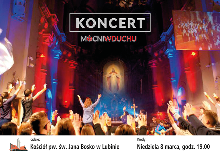 Od 8 do 11 marca br. w kościele św. Jana Bosko w Lubinie odbędą się wyjątkowe Rekolekcje Ewangelizacyjne prowadzone przez zespół Mocni w Duchu z Łodzi pt. „Jezus żyje”. Zespół Mocni w Duchu jest zawodową drużyną ewangelizacyjną. Prowadzi rekolekcje, koncerty, duże wydarzenia halowe i plenerowe, warsztaty muzyczne i taneczne, rekolekcje ignacjańskie oraz nagrywa płyty autorskie i głosi konferencje.