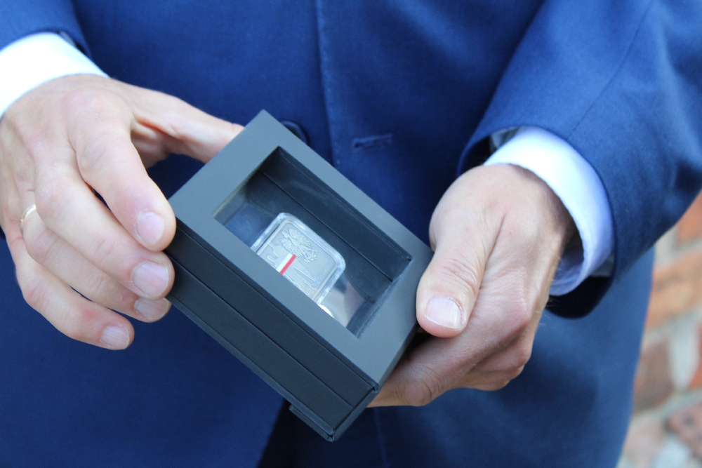 – Ta moneta ma pokazać i upamiętnić to wydarzenie. Towarzyszy jej folder, w którym opisana jest historia. Musimy pamiętać o tej śmierci, ta moneta jest tego wyrazem. W ten sposób dziękujemy i przesyłamy wiadomość „nigdy więcej takich wydarzeń” – mówi Jan Szuba. – To może jedyna okazja, żeby ta historia trafiła szerzej do społeczeństwa. Po latach ktoś znajdzie tę monetę i zapyta, co na niej jest, co tu się działo. Chcieliśmy nadać jej wyjątkowy charakter. Jest nietypowa, prostokątna, dzięki czemu łatwiej umieścić na niej więcej tematów – jest bruk, szarfa, kule, jest charakterystyczny goździk, który przypomina o tym, co się działo dzień po, kiedy ludzie ułożyli krzyż z kwiatów. Moneta jest też oksydowana, nie jest to klasyczne srebro, tylko lekko przyciemniane, tonacja żałobna podkreśla charakter tych wydarzeń. Dla nas bardzo ważna jest też obecność na monecie barw narodowych.