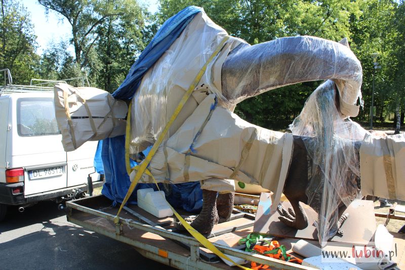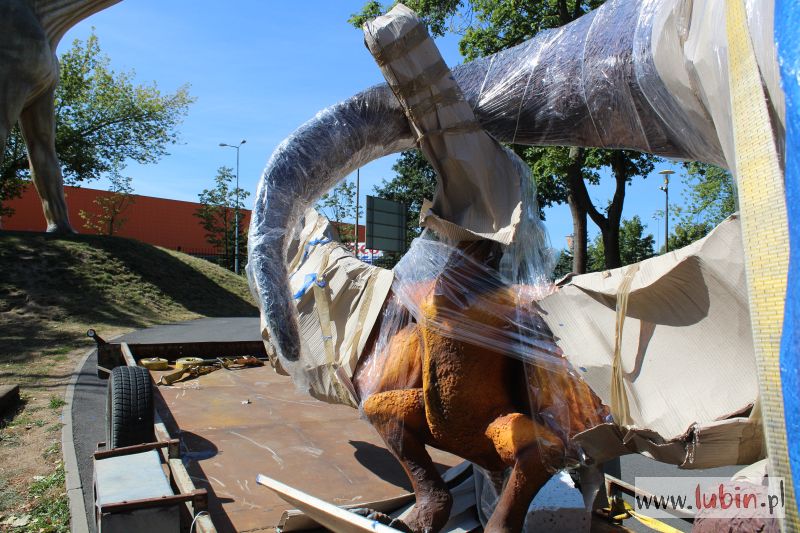 W parku Wrocławskim poruszenie. Właśnie przywieziono nowe dinozaury i rozpoczął się ich montaż. Figury w pełnej okazałości będzie można jednak zobaczyć dopiero jutro, czyli we wtorek po południu. Chwilowo zostaną one przysłonięte przed ciekawskim wzrokiem odwiedzających lubińskie zoo. – Żeby jutro była niespodzianka – wyjaśnia uśmiechając się Agata Bończak, dyrektor Centrum Edukacji Przyrodniczej.