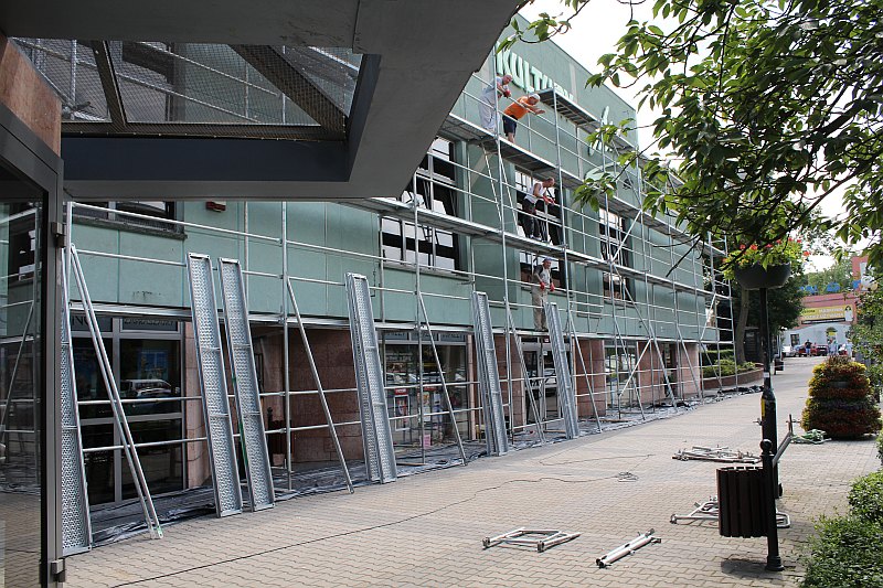 Dziś zamontowano rusztowania i rozpoczęto prace. Elewacja budynku przejdzie lifting. Na razie jedynie zachodnia ściana.