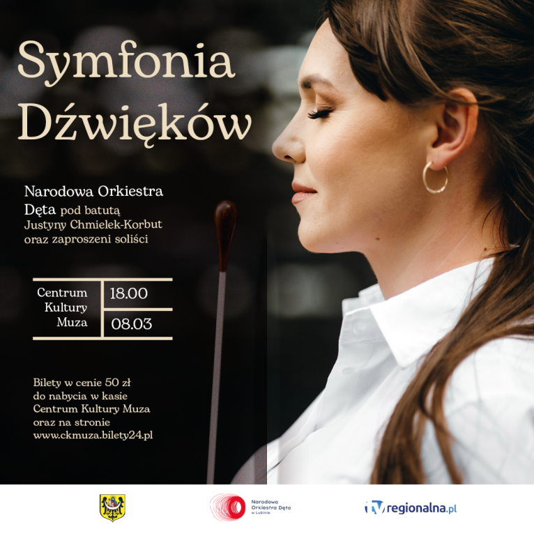 Koncert „Symfonia dźwięków” odbędzie się 8 marca o godz. 18 w Centrum Kultury Muza. Bilety kosztują 50 zł i można je kupić w kasie Muzy oraz online.