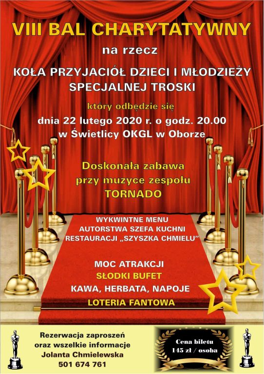 Bal odbędzie się 22 lutego o godzinie 20.00 w świetlicy w Oborze. O podniebienia gości zadba tego dnia szef kuchni z restauracji „Szyszka chmielu”, a do tańca przygrywać będzie zespół Tornado.