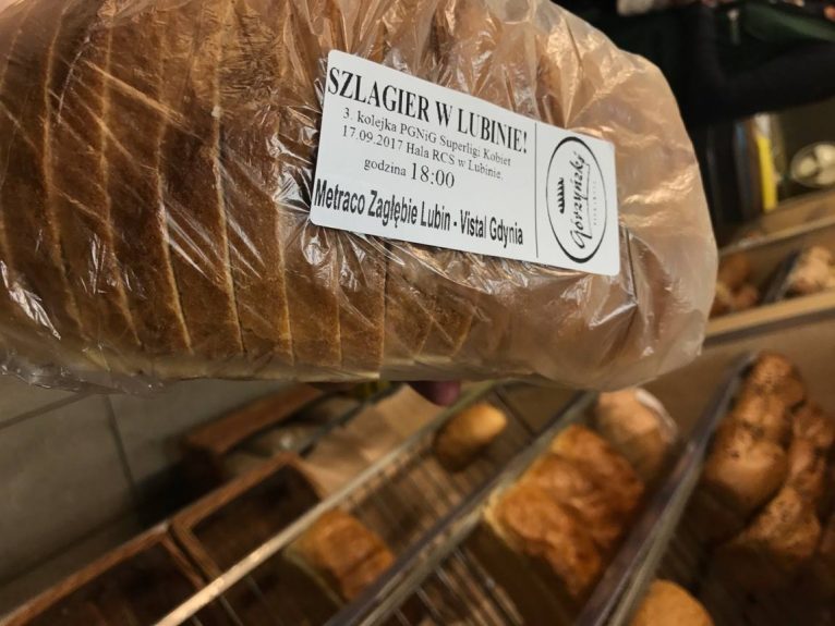 Ku zdziwieniu niektórych na opakowaniu chleba z piekarni Górzyński widnieją naklejki zapowiadające mecze lubińskich szczypiornistów.