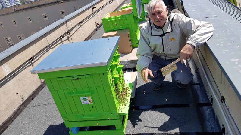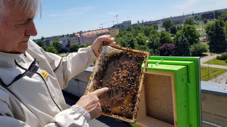 Profesjonalną opiekę nad urzędową pasieką zapewnia Mirosław Majcherek z Koła Pszczelarzy Wrocław Krzyki.