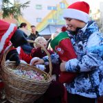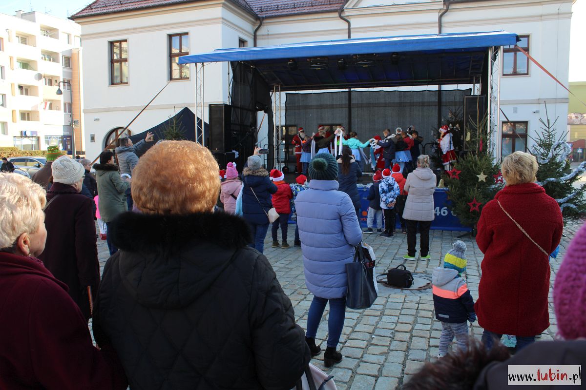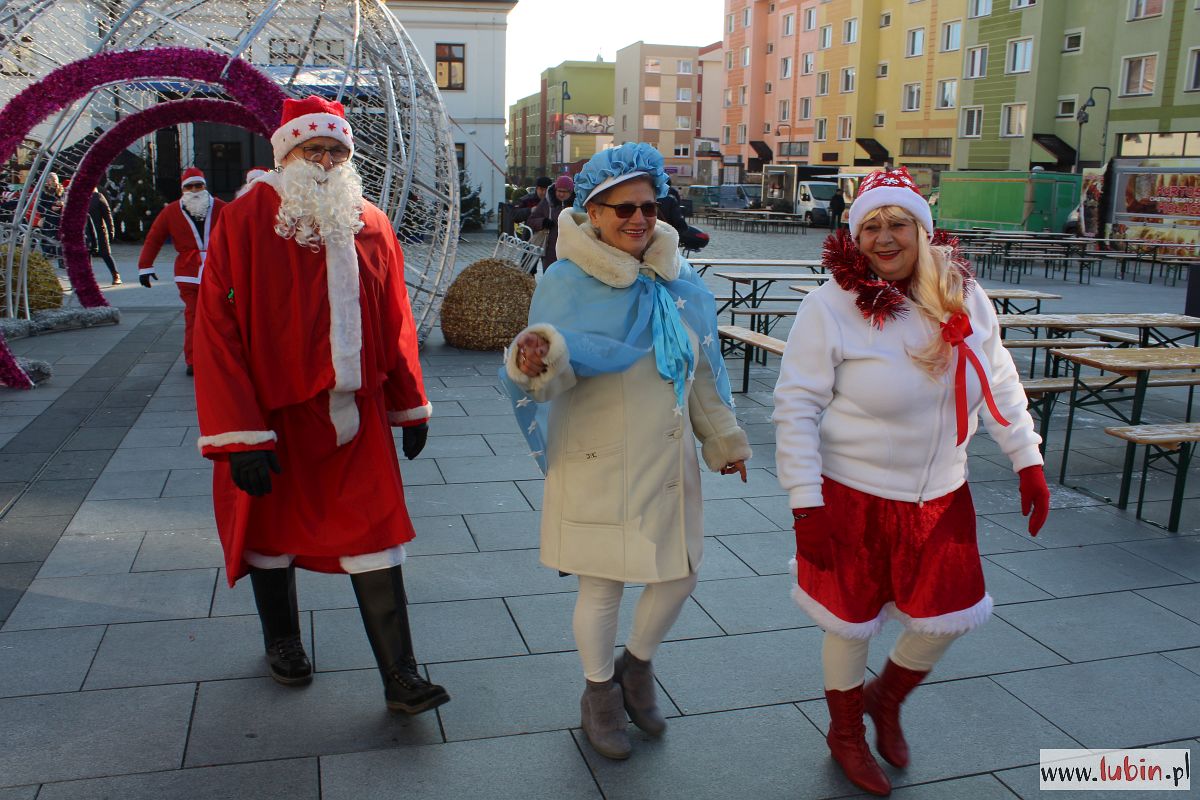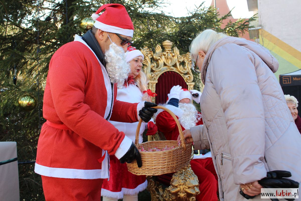 Na lubińskim rynku Mikołaj rozdaje prezenty