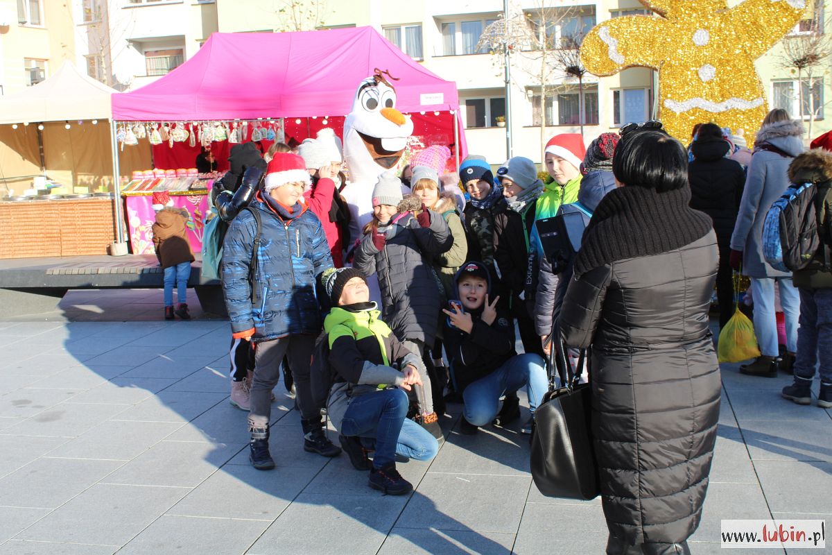 Na Jarmarku Bożonarodzeniowym zaroiło się od dzieci. Od godziny 11 czeka tu na młodszych, ale i starszych Mikołaj z białą brodą w czerwonym kubraku i czapce. Towarzyszą mu Śnieżynki, ale i bałwan Olaf oraz Tygrysek. Święty ulokował się tuż obok choinki i przy wtórze śmiechu dzieci rozdaje prezenty.