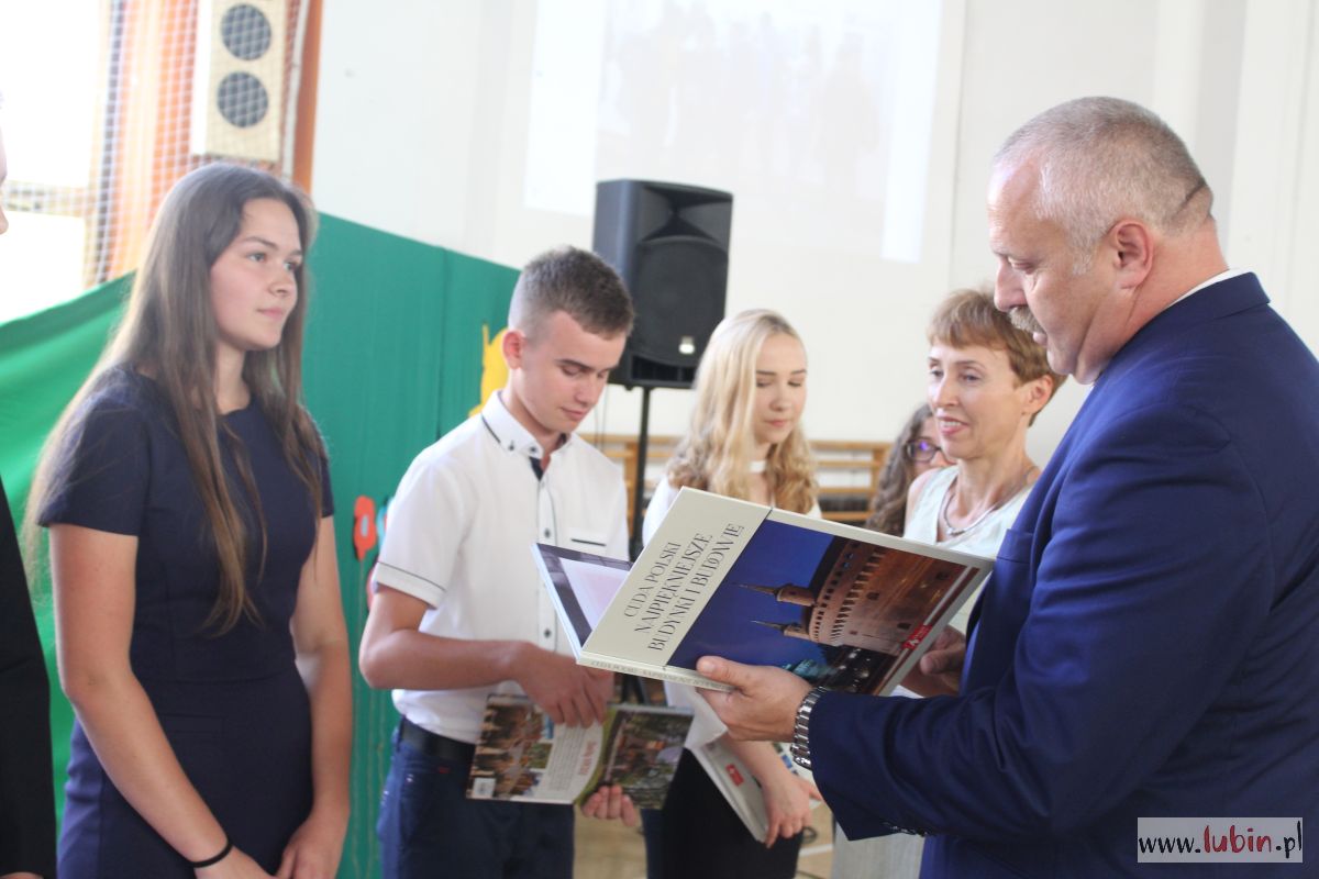 – Mamy dużo wyróżnień – przyznaje Tomasz Radziej, dyrektor II Liceum Ogólnokształcącego w Lubinie. – Dzisiaj naszą szkołę kończy 360 uczniów. Ponad 60-ciu, tych najpilniejszych otrzyma świadectwa z paskiem oraz nagrody książkowe – dodaje dyrektor.