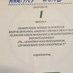 Uczennica klasy 3 technikum agrobiznesu Zespołu Szkół Centrum Kształcenia Rolniczego w Rudnej – Martyna Honc zajęła pierwsze miejsce w olimpiadzie wiedzy w zakresie bezpieczeństwa, higieny i prawa pracy dla uczniów szkół rolniczych województwa dolnośląskiego pn. „Lenistwo nad rozsądkiem czy rozsądek nad lenistwem?”.