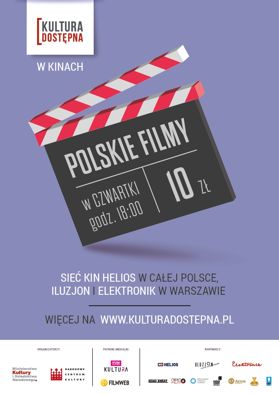 Kultura Dostępna to projekt, dzięki któremu szerokie grono odbiorców może zapoznać się z polską sztuką filmową. Jednocześnie zniwelowana została jedna z głównych barier w dostępie do kina, jaką jest wysoka cena biletów. Wejściówki kosztują bowiem tylko 10 zł.