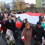 Pochód przeszedł spod kościoła pw. Matki Boskiej Częstochowskiej, gdzie wcześniej odbyła się msza, pod pomnik Józefa Piłsudskiego. Tam złożono kwiaty.