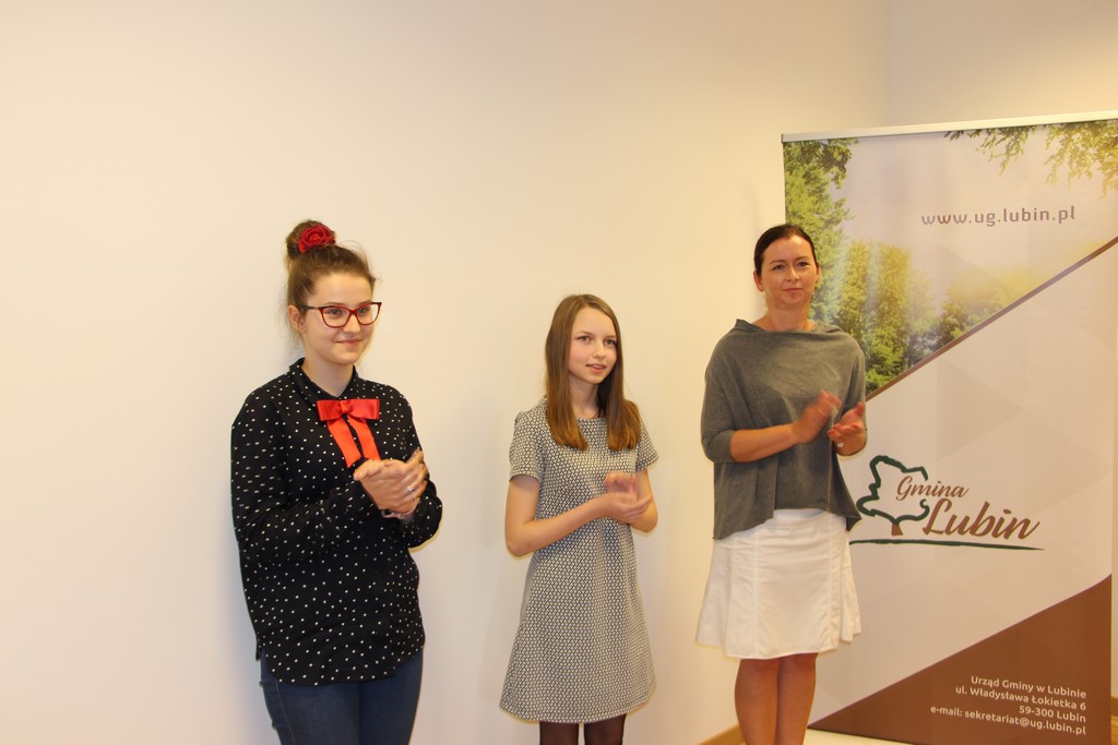 Za najwyższe wyniki w nauce na poziomie gimnazjum nagrodzone zostały Aleksandra Naglik z Obory i Klaudia Jędrak z Pieszkowa, uczennice klasy gimnazjalnej III Liceum Ogólnokształcącego w Lubinie, które uzyskały średnią ocen 5,3.