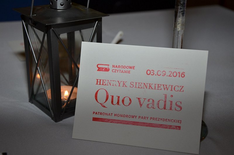 Czytano zaś jeden z rozdziałów pt. „Winicjusz, Ligia – odcienie miłości”, który był skróconą adaptacją powieści przygotowaną przez Tomasza Burka, literaturoznawcę – specjalnie na tegoroczną edycję Narodowego Czytania.