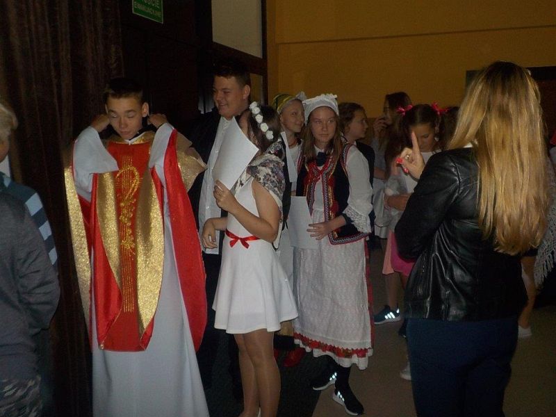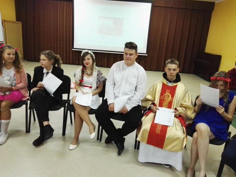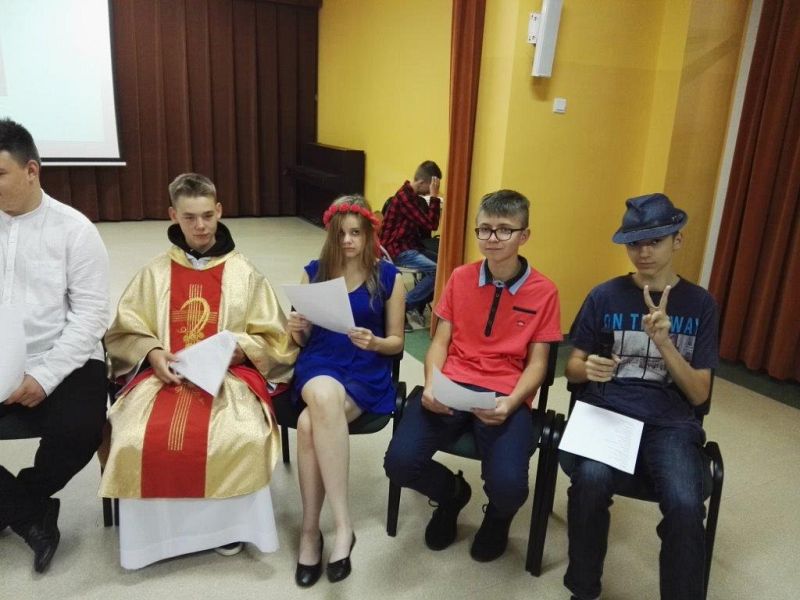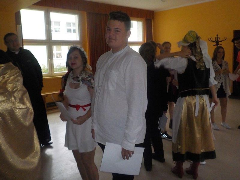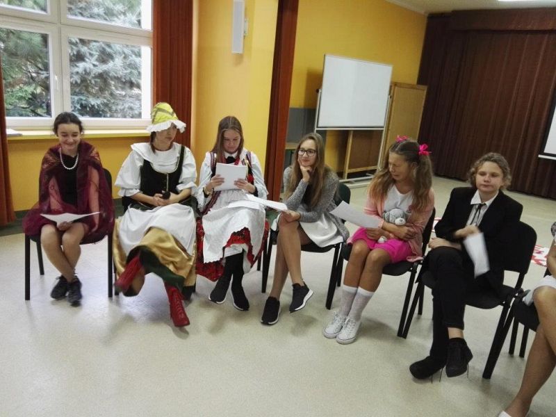 Uczniowie, którzy wcielili się w postacie dramatu, czytali tekst w kilku turach dla rodziców i kolegów z klas starszych (siódme oraz drugie i trzecie gimnazjalne).