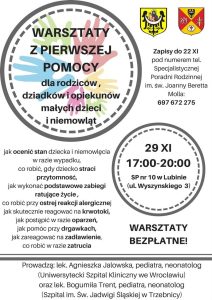Jak ocenić stan dziecka i niemowlęcia w czasie wypadku? Co zrobić, gdy dziecko straci przytomność? Jak wykonać podstawowe czynności ratujące życie? – to tylko niektóre z tematów, które zostaną poruszone podczas warsztatów. Zajęcia adresowane są do rodziców, dziadków i opiekunów małych dzieci i niemowląt.