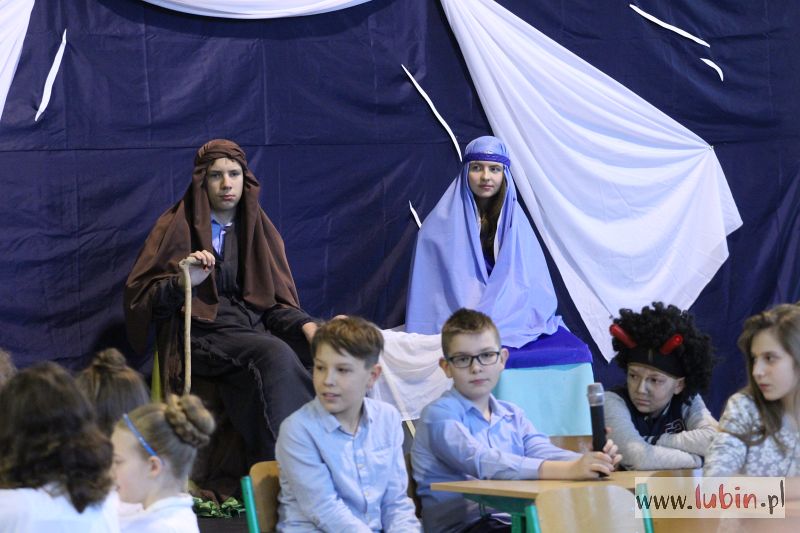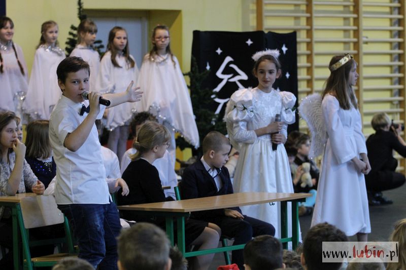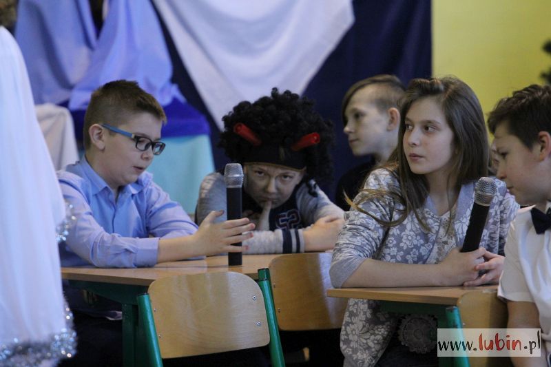 Diabeł, anioły i trzej królowie pojawili się dziś w Szkole Podstawowej nr 1. Nie było tradycyjnych lekcji w klasach, dzieci uczyły się o zwyczajach bożonarodzeniowych. Mogły też zobaczyć swoich nauczycieli w nietypowych rolach… występujących specjalnie dla nich na scenie. – Zawsze to dzieci przygotowują wszystkie uroczystości, oczywiście pod czujnym okiem nauczycieli. Teraz chcieliśmy pokazać, że nie tylko wymagamy, ale również sami potrafimy się zaprezentować – mówi uśmiechając się Elżbieta Godzic, wicedyrektor lubińskiej Szkoły Podstawowej nr 1 z oddziałami integracyjnymi.