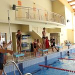 Uczestnicy pod okiem instruktora i ratownika, na basenie Centrum 7, trenowali pływanie i skoki do wody. Zabawy połączone z nauką co tydzień sprawiały radość najmłodszym i doskonaliły technikę pływania wśród starszych dzieci. Jak zwykle byli stali bywalcy, ale również nowi goście naszych poniedziałkowych spotkań, którzy odkryli, że woda to świetna zabawa.