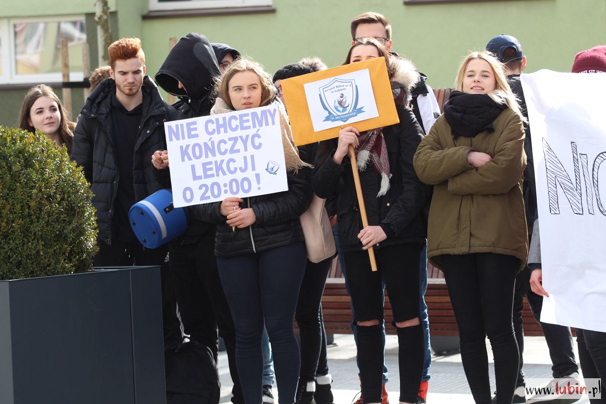 „Lekcje na korytarzu? Lekcje do 20? Nie!”, „Nic o nas bez nas”, „Jesteśmy otwarci na dialog! ” – krzyczeli uczniowie i nauczyciele z Zespołu Szkół nr 2 oraz II Liceum Ogólnokształcącego, którzy przeszli dziś przez Lubin. – Nie ma takiej możliwości, żeby lekcje prowadzone były na dwie zmiany – zapewnia z drugiej strony Bernard Langner, wicestarosta powiatu lubińskiego, dodając, że jego zdaniem przyczyną protestu są nieprawdziwe informacje, jakie trafiły do nauczycieli i rodziców.