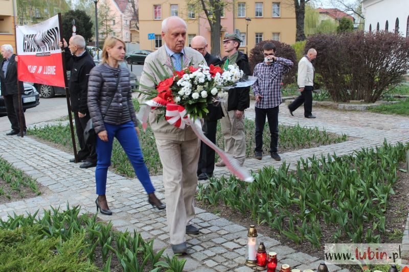 96 zniczy symbolizujących osoby, które w 2010 roku zginęły w katastrofie lotniczej w Smoleńsku zapłonęło dziś na murze pamięci przy ulicy Pruzi w Lubinie. Grupa lubinian, w tym przedstawiciele Klubu „Gazety Polskiej” oraz Prawa i Sprawiedliwości, uczciła siódmą rocznicę tragedii i oddała hołd ofiarom. – Ta tragedia nosi znamiona nie katastrofy lotniczej lecz zamachu. Na naszych oczach kłamstwo katastrofy smoleńskiej przegrywa – zwrócił się do zebranych Ryszard Ryśnik, szef Klubu „Gazety Polskiej” w Lubinie.
