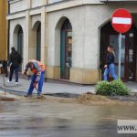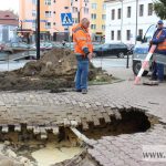 Do awarii doszło dzisiaj przed godz. 15 podczas prac remontowych na ul. Mieszka I. Sieć wodną przypadkowo uszkodzili robotnicy, którzy w tym miejscu kładli rury eletroinstalacyjne. Pękła jedna ze starych rur, woda wybiła na powierzchnię uszkadzając przy tym nawierzchnię I wypłukując piasek na ulicę. Na miejscu są pracownicy MPWiK, którzy usuwają skutki awarii.