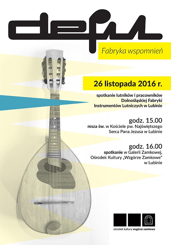 W tym roku osoby związane z Dolnośląską Fabryką Instrumentów Lutniczych w Lubinie spotkają się w sobotę 26 listopada. Najpierw, o godzinie 15 odbędzie się msza w kościele pw. Najświętszego Serca Pana Jezusa. A o godzinie 16 zaplanowano spotkanie w Galerii Zamkowej Ośrodka Kultury Wzgórze Zamkowe.