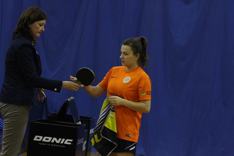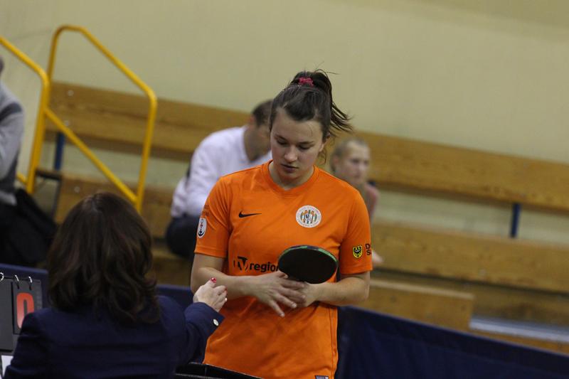 Antonina Szymańska na pierwszym stole wygrała z Klaudią Franaszczuk ustanawiając wynik meczu na 4:3, a na drugim stole Ada Jończyk przegrała po zaciętej walce z Esterą Razakowską i znów był remis 4:4.