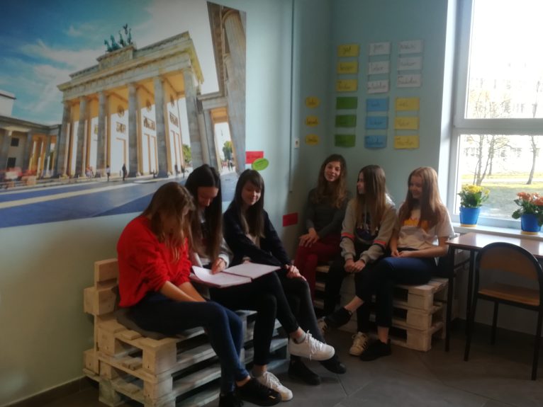 W ramach konkursu uczniowie wspólnie zastanawiali się, jak powinna wyglądać optymalna sala lekcyjna do nauki języka niemieckiego i wprowadzili takie zmiany, które sprawiły, że przebywający w niej uczniowie i nauczyciel czują się komfortowo, a aranżacja klasy ułatwia im naukę.