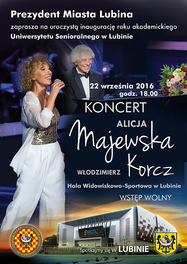 Rok akademicki studenci-seniorzy zainaugurują 22 września. Już po raz trzeci spotkają się w hali widowiskowo-sportowej. Dzięki temu w rozpoczęciu roku będzie mógł wziąć udział każdy student, a nie tylko delegacje. Poprzednim razem dla seniorów wystąpił z tej okazji Teatr Ruchu Ocelot. Teraz będzie okazja usłyszeć i zobaczyć Alicję Majewską oraz Włodzimierza Korcza. Wstęp na koncert oczywiście jest bezpłatny. Organizatorzy zapraszają także seniorów z gminy wiejskiej Lubin.