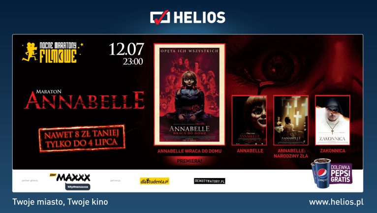 Już w przyszły piątek, 12 lipca, w lubińskim kinie Helios odbędzie się noc horrorów z demoniczną lalką Annabelle.