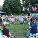 Idąc jutro na pokazy kina w parku Wrocławski, warto zabrać ze sobą koc lub jakieś siedzisko. Dziś przyszło tak dużo osób, że leżaków i poduszek szybko zabrakło.