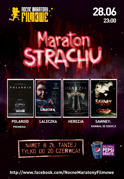 Jednej nocy wyświetlone zostaną cztery horrory. Na początek, długo wyczekiwana premiera filmu „Polaroid”. Dalej reaktywacja kultowego horroru z lat 80. ubiegłego wieku – „Laleczka”. Młody chłopiec dostaje w prezencie lalkę, której złowieszcza natura szybko daje o sobie znać. Następnie – „Herezja”. Zakon, który miał być schronieniem, staje się areną walki dobra ze złem. Dla najodważniejszych deser w postaci filmu opowiadającego historię religijnego psychopaty i jego kanibalistycznej rodziny – „Sawney: kanibal ze Szkocji”.