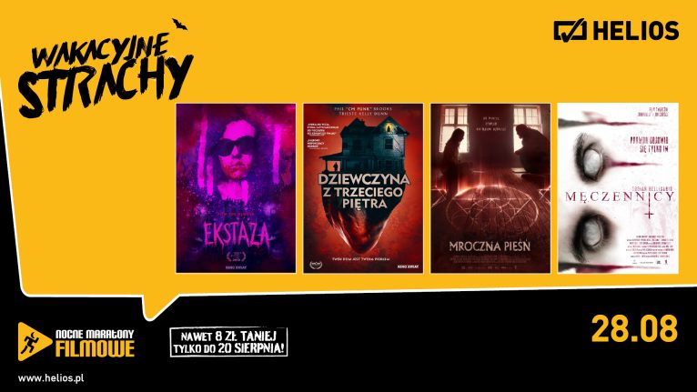 Ten przygotowany z myślą o kinomanach zestaw filmowy, to idealny sposób na zakończenie wakacji. Na początek hipnotyzujący horror „Ekstaza”. Po krótkiej przerwie makabryczna i pełna czarnego humoru historia pewnego domu w filmie „Dziewczyna z trzeciego piętra”. Dla najwytrwalszych deser – „Mroczna pieśń” i na sam koniec „Męczennicy”.