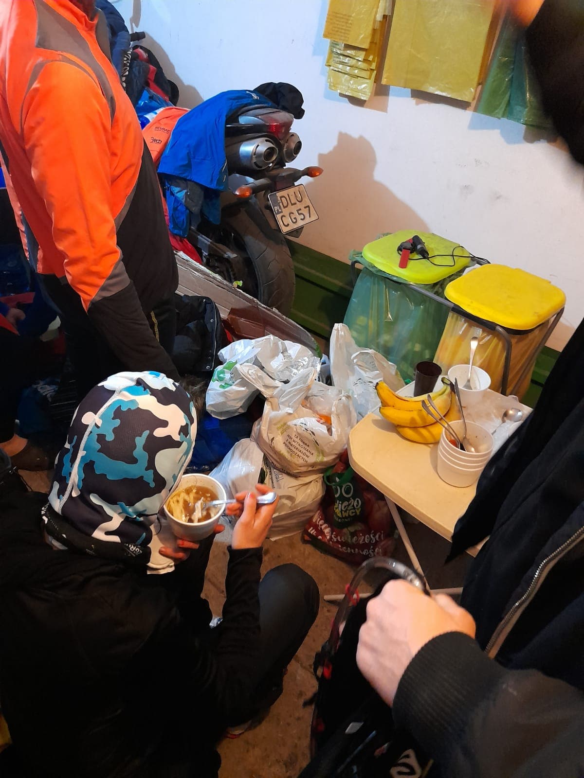 Pierwszy punkt był zorganizowany w Raszówce przy GOK po 23 km. Drugi był na 51 km w Dąbrowie Dolnej w domu Dominika, kolegi biegaczy. – Za co mu dziękujemy – podkreśla organizator. Trzeci punkt był w Mlecznie przy kościele na 62 km. Kolejne w Juszowicach przy Górze Wenus, Rynarcice obok kościoła, Żelazny Most przy boisku. a ostatni po zbiegnięciu z Ostrzycy. Osoby odpowiedzialne za punkty żywnościowe poruszały się dwoma autami, mając zapasy w bagażniku. – Była cały czas gorąca herbata, a od 51 km ciepły rosół z makaronem. Cały czas było dużo jedzenia od bułek z szynką, powidłami, pasztetem, chleb ze smalcem, naleśniki w każdej postaci, owocami i słodyczami. Ekipa się złożyła po troszkę pieniędzy, a resztę daliśmy my – komentuje Artur Niedźwiedzki.