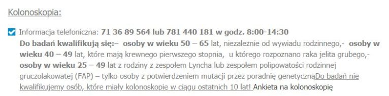 Szczegółowe informacje na temat badań endoskopowych znajdują się na stronie internetowej DCO